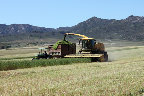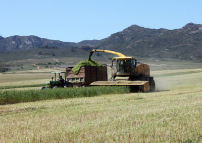 Koppe wat gebruik word is ‘n Pickup, 6m mielie tafel (nie ry gebonde) en Direct Cut (gras, hawer, fyn graan)