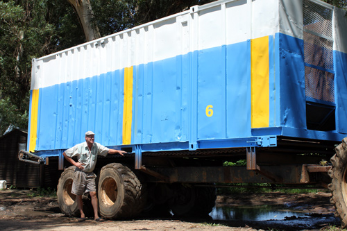 Cor Kuilvoer se waens word self gebou en kan tot 46cube laai en binne 30 sekondes afgelaai wees.